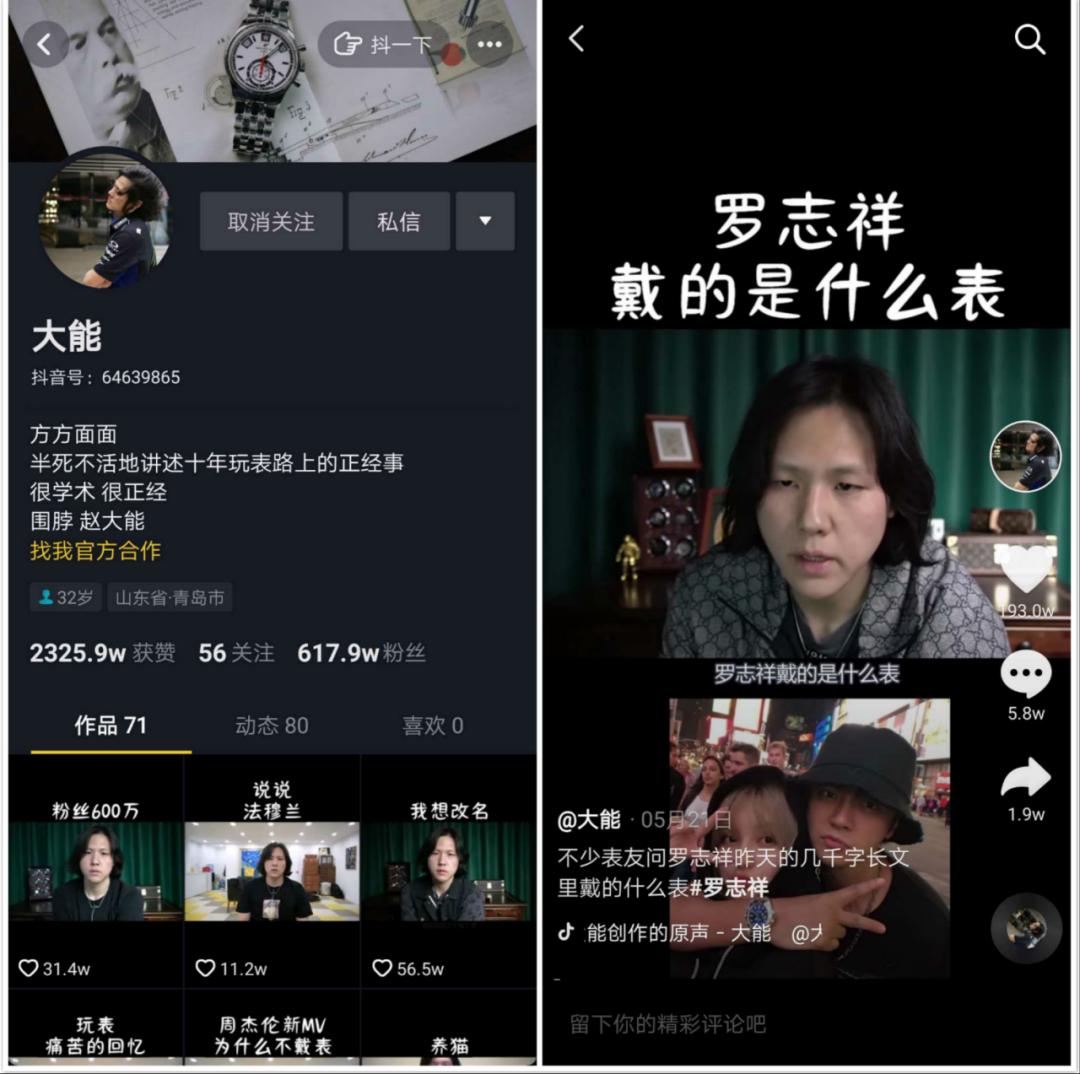 “意料之外”是大能(抖音原昵称:大能的玩表笔记)、科学时光机等抖音新晋创作者们对自己粉丝增长情况的普遍感受,而他们的视频内容也早已跳出了十几秒或是1分钟的限制。
