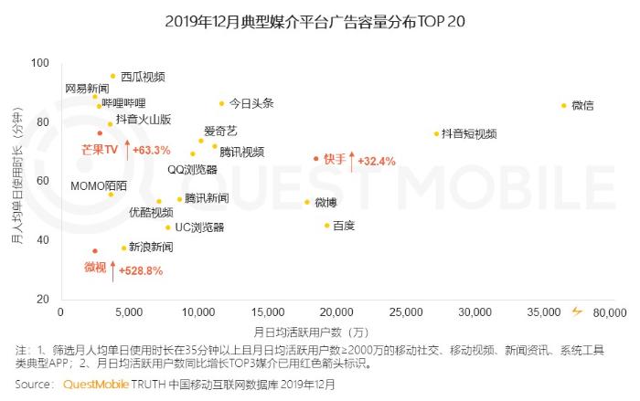 Quest Mobile数据显示, 2019年抖音短视频DAU(日均活跃用户)远超除微信外的其他头部APP,抖音短视频和抖音火山版的月人均单日使用时长也都位居前列。西瓜视频更是有些出人意料地在使用时长方面拔得头筹。