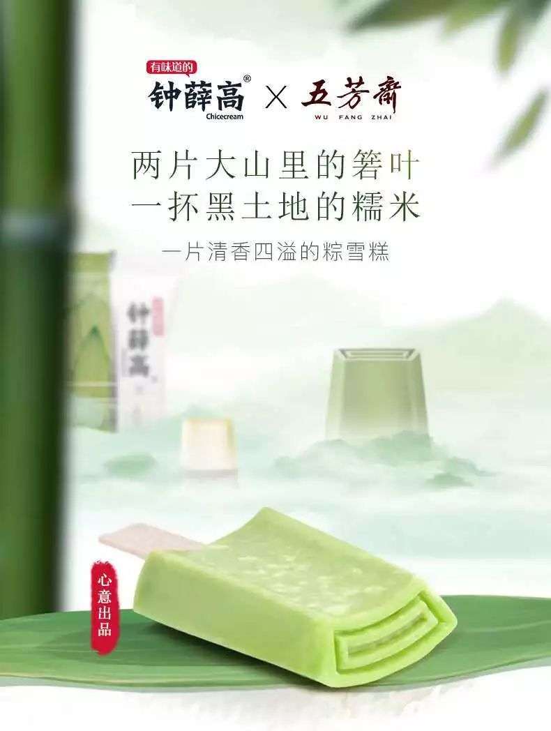 钟薛高和五芳斋粽子合作,出了一款粽子味儿的冰淇淋,特别的味道和奇怪的体验立刻成为了年轻人讨论和追捧的新宠。