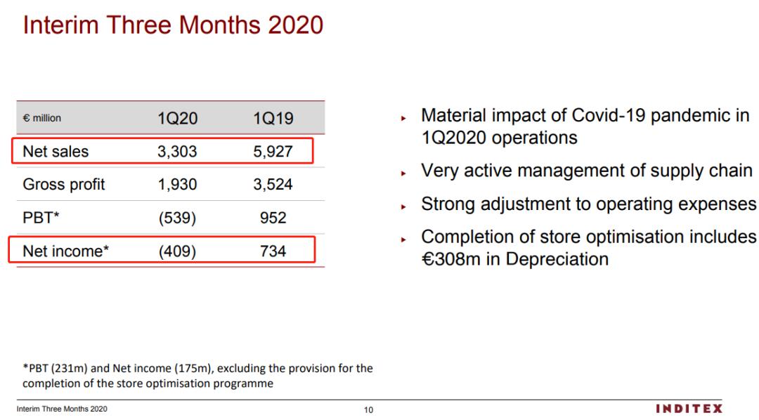 Inditex集团坦言,大面积的关店对业绩产生严重的负面影响。Inditex集团提出了史上规模最大的关店计划,将于今明两年永久关闭1000~1200家门店,主要针对Zara、Massimo Dutti和Pull&Bear等品牌的小型门店,以及盈利能力小于26万欧元的门店。