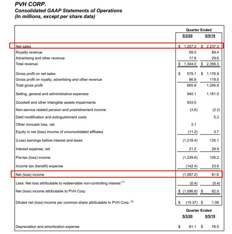 Calvin Klein、Tommy Hilfiger母公司PVH集团在2020年第一财季(截至5月3日的三个月内)销售额下滑43%至12.57亿美元(约合88.9亿人民币),净亏损则高达11亿美元(约合77.86亿人民币)。其中,Tommy Hilfiger销售额下跌39%至6.15亿美元,Calvin Klein销售额亦减少了46%至4.26亿美元。