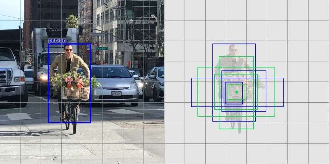 另一类算法是以SSD(Single Shot MultiBox Detector)和YOLO(You Only Look Once)为代表的一步检测法,这类算法将位置检测的外包矩形和分类概率统一编码到一个卷积神经网络预测输出里。具体的,图像可以以一定的步长划分成格子,每个格子关联几个(比如6个)不同比例的Anchor Box(比如1:1, 1:2, 2:1等),每个格子的每个Anchor Box可以预测一个中心点(x, y)和长宽(l, w)的偏移量以及对应区域是某个分类的概率p,训练过程中通过梯度下降来调整模型参数最小化损失函数。目标检测的损失函数由两部分组成:分类损失函数及定位误差,为减少过拟合的情况也会加入正则化损失,3者做一个加权线性组合。