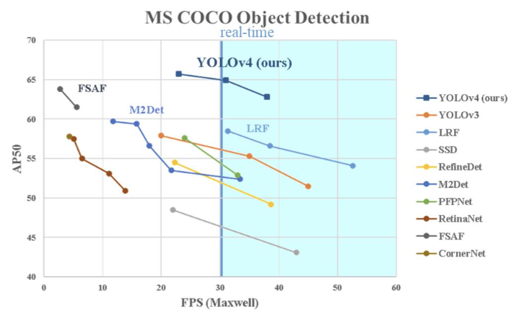 SSD及YOLO算法在延时和精确度方面平衡比较好,可以满足视频实时检测(30FPS)的需求。本质上SSD和YOLO这类目标检测算法可以理解成一个框架,在这个框架里有多个组成部分或决策算法,不同的选择组成具体的目标检测模型。比如框架中做为主干的特征抽取网络部分,ssd原始使用的vgg16,yolo使用的Darknet53,在平衡速度和精确度时,也可以选择其他的特征抽取网络,如为移动设备优化的mobilenet v1,v2,或者inception等,不同的选择可以组合出多种不同的具体模型。今年最新发布的YOLO v4模型在COCO的数据集上速度和精确度都达到了不错的提升。