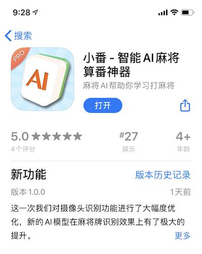 优化后的【小番】,即使是带有一定透视角度的,20多张不同牌同屏也可以一次轻松识别,做到快速认牌算番的效果。行文至此,好玩的东西就介绍完了。各位看官,目前【小番】新版本上线,特价2折优惠活动中,赶紧App Store搜索下载一个收藏起来,以备逢年过节打牌使用吧😁(近30层深度神经网络,平均每层不到3毛钱哦)。