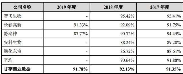 2017-2019年,公司主营业务毛利率分别为91.35%、92.13%和91.78%,一直保持在较为稳定的高水平,且略高于同行业上市药企。