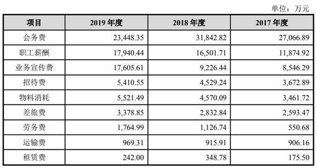 甘李药业在这两个方面出手阔绰。2017-2019年,公司会务费用分别约为2.34亿元、3.18亿元、2.71亿元。