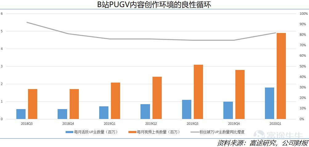 而在B站,PUGV的内容可以占到平台的91%,这些和B站一起成长的UP主,通过制作优质的内容,为平台吸引到众多用户,粉丝和流量的导入又促进UP主生产更多内容,促使B站建立起内容创作的良性循环。