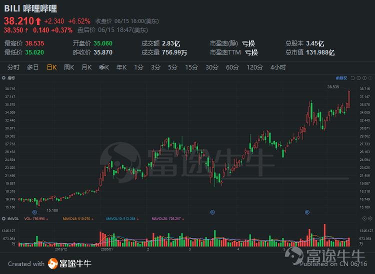 随着2019年B站开始破圈,平台的影响力持续上升,内容品类以及用户数量保持稳健增长,公司的股价也是不断上涨,从去年Q2财报发布以来,涨幅接近翻倍。