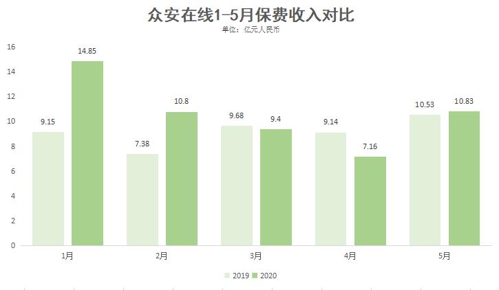 此前,众安在线公布了今年前5个月的保费收入规模。公告数据显示,2020年1月1日至5月31日,众安在线获得的原保险保费收入总额约为53.49亿元,同比增长16.6%。