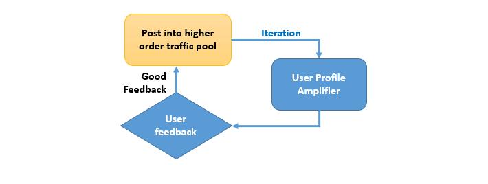 经过上一个步骤,用户的反馈将成为一条视频是否可以获得更多曝光的标准。在第四个步骤中,我们将介绍一个用户肖像放大机制。换句话说,优秀的视频内容将在特定的用户组(比如球迷、时尚爱好者)中得到更多的曝光。这是一种类似于“猜您喜欢什么”的概念。通过用户留下的各类数据,抖音可以建立用户的个人资料库,从而在内容和用户间进行更好的搭配。
