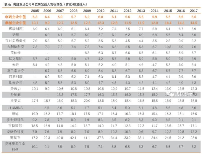 相比较而言,医疗器械公司在产品专利到期后没有与模仿难度大,通常还能继续享受器械产品的技术红利。不仅如此,经过数据统计,医疗器械公司前期的研发投入相较制药公司也会更低,投入产出比更高。