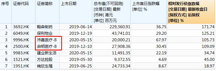 而2020年5月中旬上市的沛嘉医疗上市首日更是暴涨67.97%,上市至今累计涨幅高达102.47%。