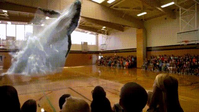 2015 年,这家公司对外公布了一段引人无限遐想的 CG 视频:一条巨大的鲸鱼突然从体育馆的地板翻腾而上,喷溅而起的水花似乎要把场内目瞪口呆的观众打湿。这个病毒式传播的「广告」,让大部分人第一次知道了 Magic Leap 的神秘存在。但与之相伴的,还有人们在搞清楚这是「想象」而不是技术真实状态后,对这种「过度」畅想的批评。