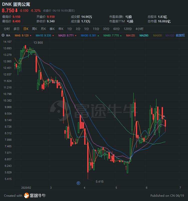 北京时间6月19日消息,蛋壳公寓周四收盘大跌逾6%,此前蛋壳公寓CEO高靖被调查,总裁崔岩出任临时CEO。