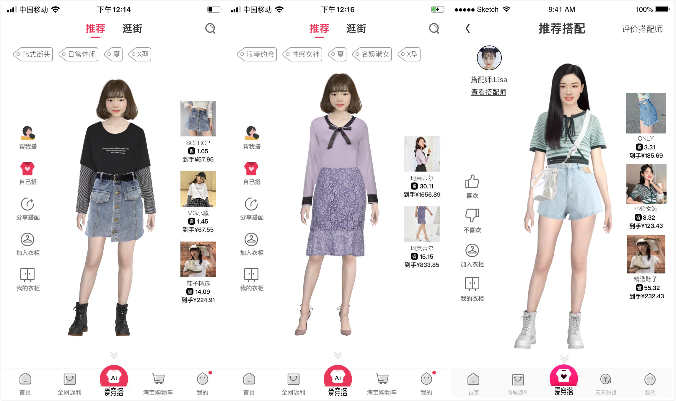 爱穿搭:AI推荐和搭配师推荐界面