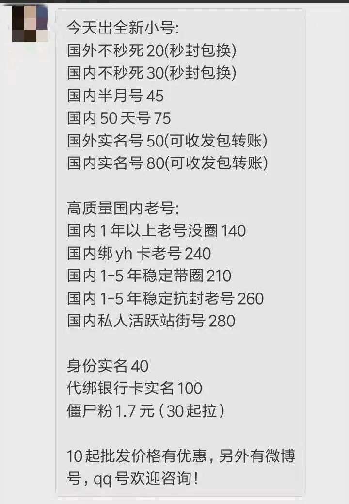 社交账号买卖黑产