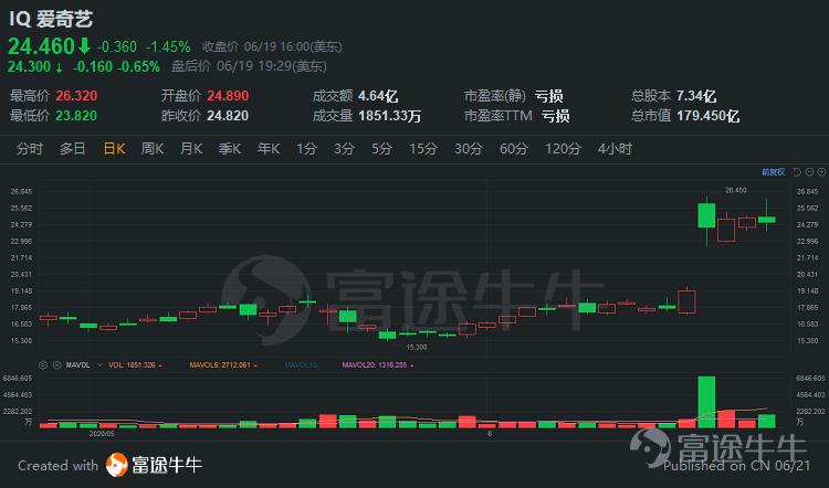 6月16日,$爱奇艺(IQ.US)$股价大涨25.85%。据路透消息,知情人透露,$腾讯控股(00700.HK)$已经与$百度(BIDU.US)$进行接触,商讨收购爱奇艺股份事宜,具体的购股规模尚未确定。