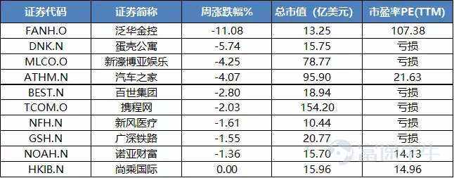 1.3 中概股周表现最差TOP10