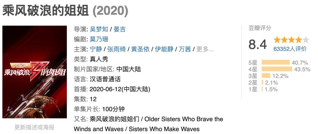 这档30位30+岁女艺人的选秀成团节目,刚刚上线12小时,就获得了1.4亿的播放量。上线一周,豆瓣6万多观众随即给出8.4的高分。