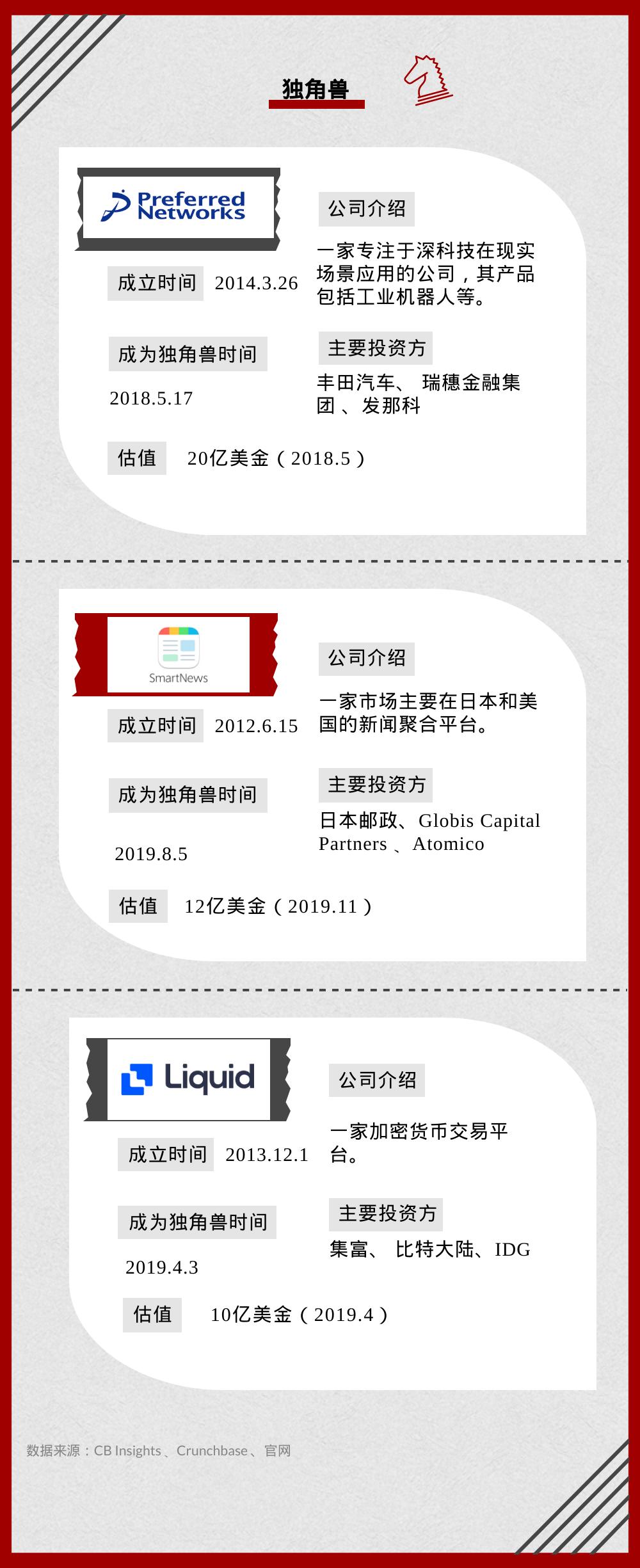 日本不是一个创业生态十分活跃的国度。据 CB Insights 统计,日本只有3家现存独角兽。这一数据不仅与各自孵化出200多只独角兽的中美相去甚远,与印度也有很大差距,甚至不及印尼。就连建立千亿美元愿景基金的孙正义,也对日本本土创业公司兴趣寥寥。