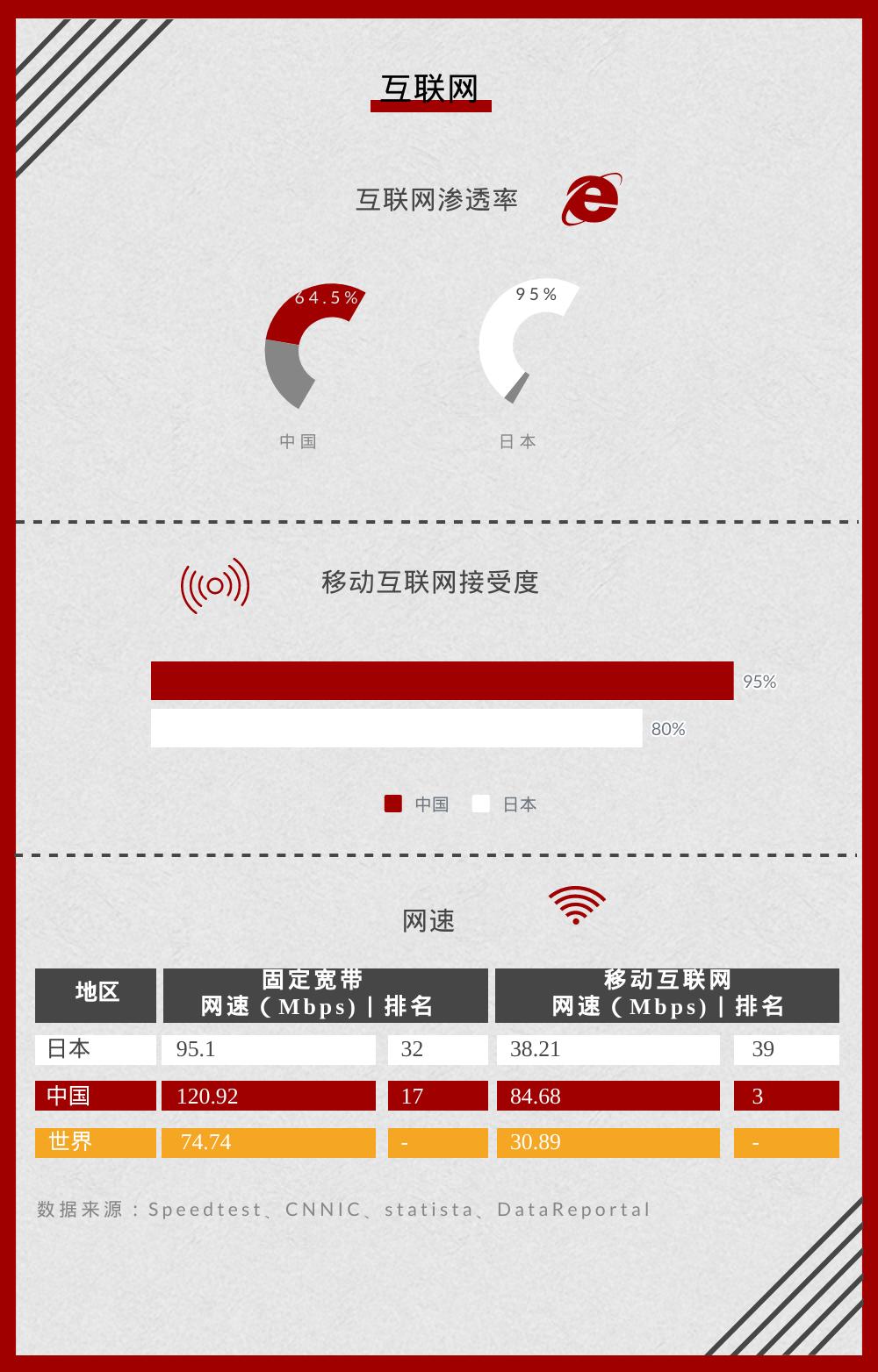 此外,无论是固定 wifi ,还是移动流量,日本的网速都不及中国。