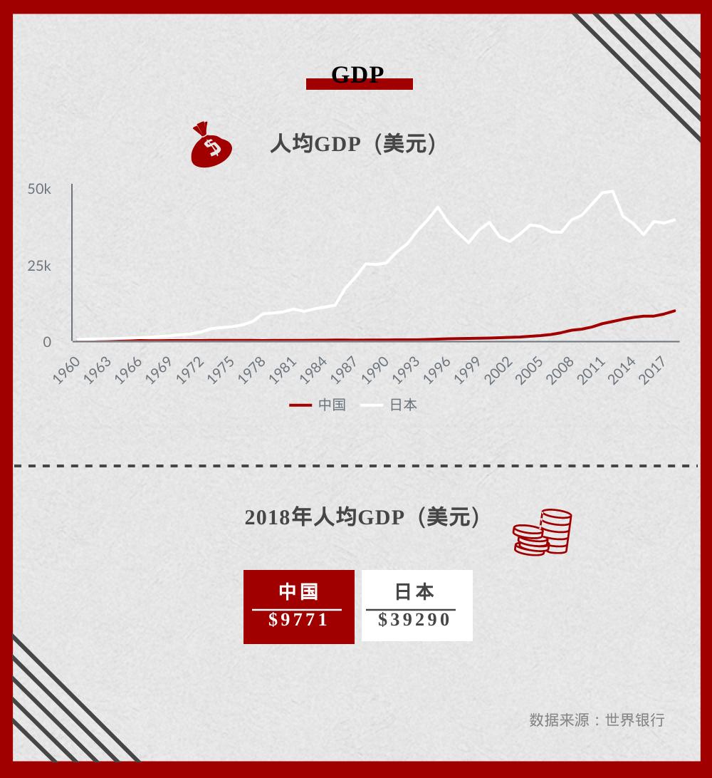 尽管从1989年开始,日本经历了“失去的二十年”,又在08年金融危机中受到沉重打击,但它依然是高收入国家,其人均GDP依然在4万美元上下徘徊,远高于中国。