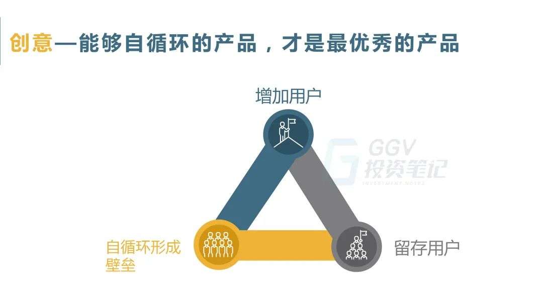 在我看来,最优秀的产品就是能够自循环的产品。分几个步骤来讲的话,第一步是增加用户,第二步是能够留存用户,第三步是能够自循环形成壁垒。也就是每增加一个用户,都能对系统带来正向的影响力。