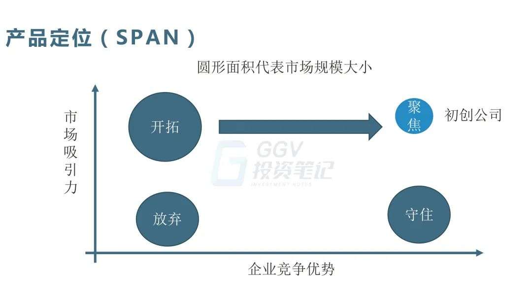 很多创业者会困惑的问题是,什么是真正意义上的“聚焦”?借用SPAN模型,我认为创业的聚焦就是把精力投入在市场吸引力强、自己竞争优势强的市场,而不用在乎这个市场是否是大,还是小。