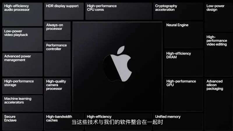 其自研芯片整合了大量的子单元,包括CPU、GPU、神经引擎(Neural Engine)、先进电源控制模块、安全隔区Secure Enclave等等,这些技术与苹果的软件整合在一起时,会提供无与伦比的性能体验。