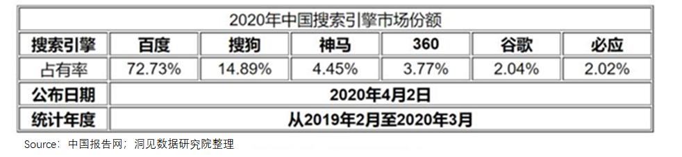环顾国内搜索市场,百度已经形成了较明显的头部效应,而国际市场上最有力的竞争对手-谷歌搜索因为政策原因没有进入国内市场。
