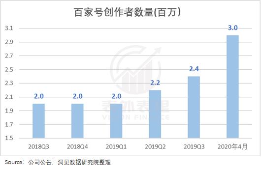 内部方面,百家号作为百度生态内最大的内容提供者,同时为搜索和信息流提供内容。根据最新百度移动生态大会,百家号创作者在2020年4月已经达到300万人。