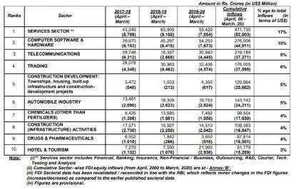 印度工业政策与促进总局(DIPP)发布的数据显示,印度吸引外资最多的三个行业是服务业、计算机软硬件以及通讯行业。其中,从 2000 年开始到 2020 年 4 月,印度的互联网软硬件市场累计吸引外资 449 亿美元。