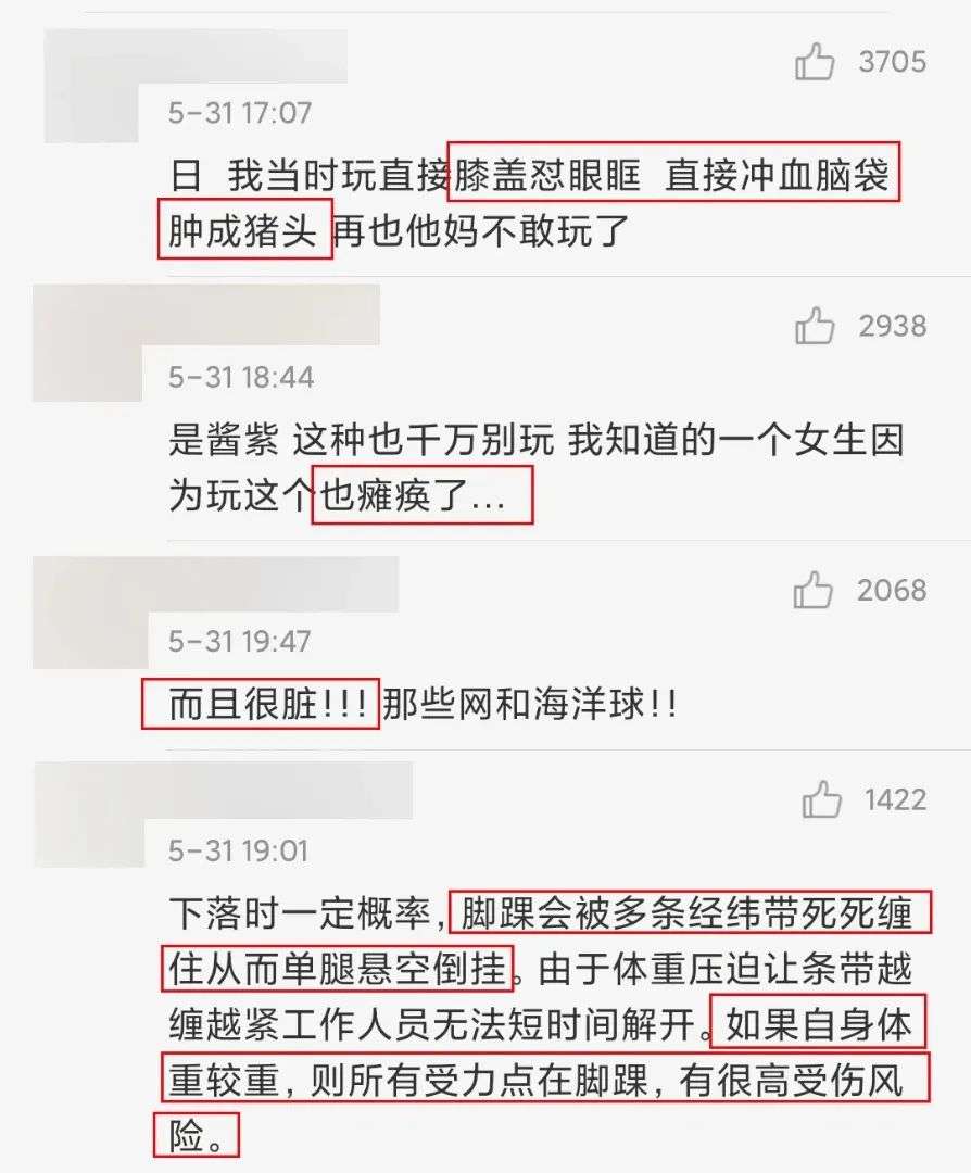 看似轻松有趣的背后,仔细翻翻各大点评界面,便能看到触目惊心的B面,“膝盖怼到眼眶,直接充血,脑袋肿成猪头”,“脚踝被缠住,倒挂悬空”,“场馆软包有问题,朋友玩的时候磕在上面,头上划开个大口子”……