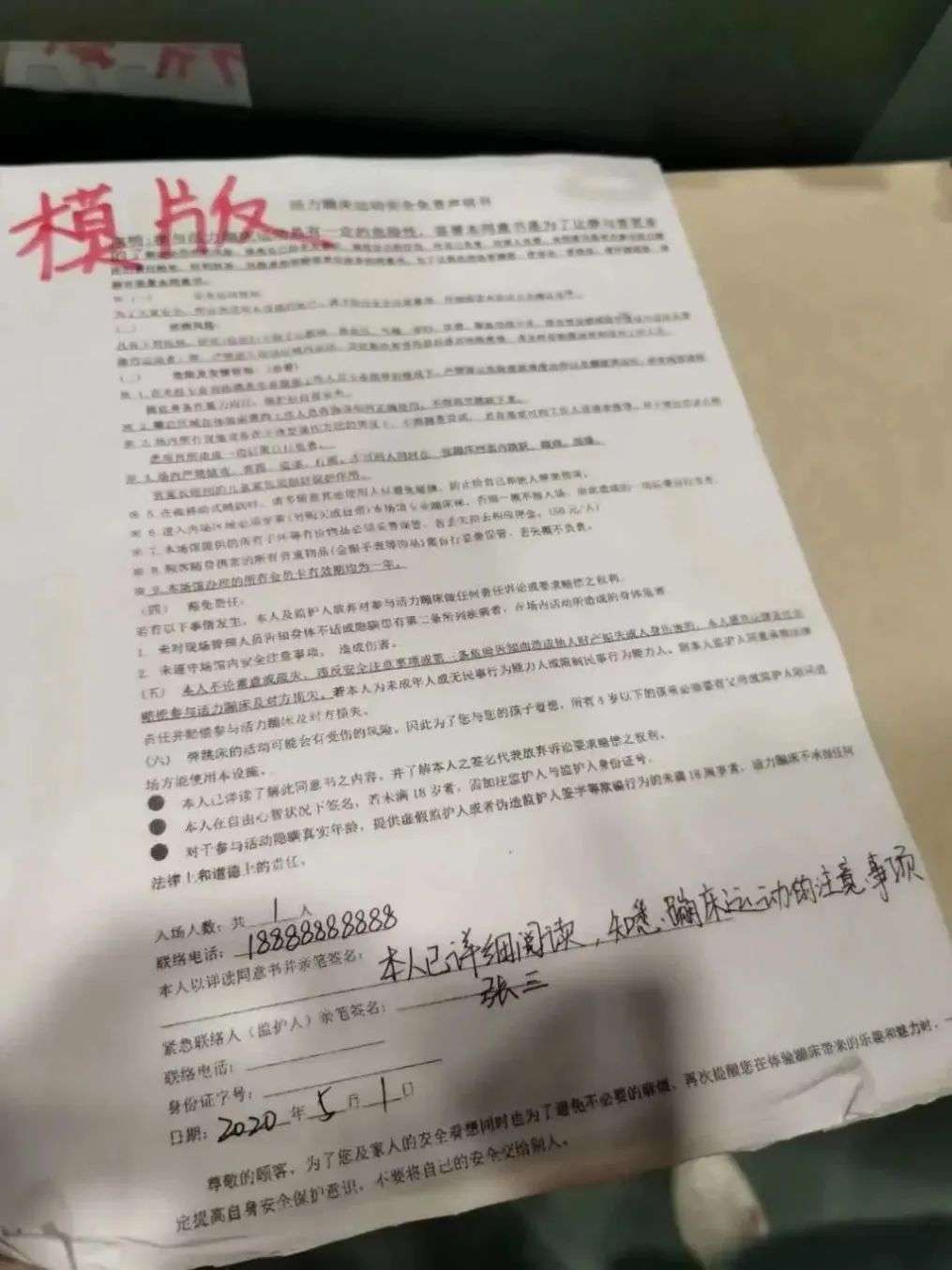 更为狡黠的是,在开始游戏前,商家还会要求签署一个不公平《安全免责声明书》。整个协议足有两三千字,一般人通常无暇细看,便急匆匆签下名字。