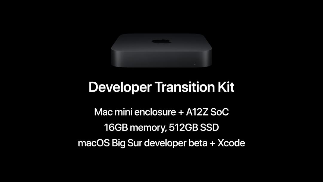苹果也为开发者准备了一款硬件——Mac mini 的外观,内置了 Apple A12Z 处理器、16GB 内存和 512GB SSD,预装 macOS Big Sur 开发者预览版系统和 Xcode 开发套件。