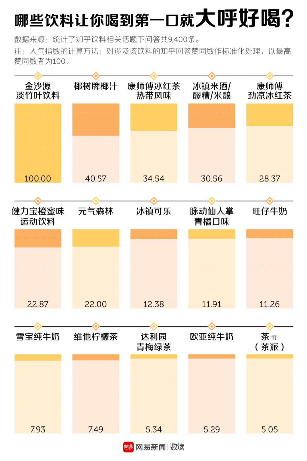 排名第一的是四川本土饮料公司旗下的金沙源淡竹叶饮料,这个提取淡竹叶中的“精华”,口感清凉、清爽的植物饮料畅销一时,但目前已经停产,却仍叫不少人念念不忘。