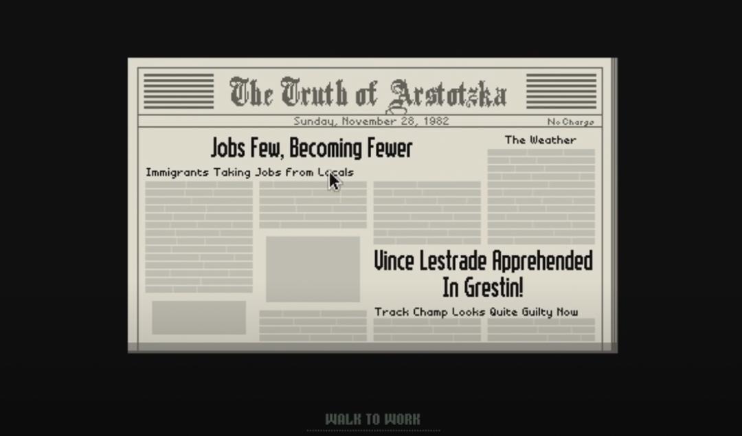 每天早上的新闻报纸帮助玩家了解游戏情节推进,也影响到这一天的审查规则