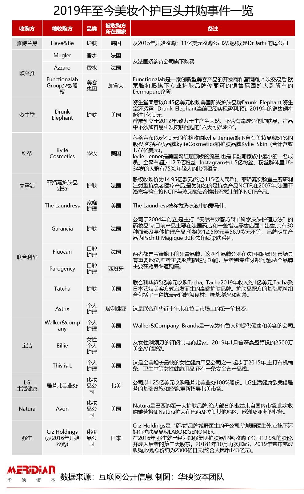 具有专业背景的品牌成为收购热门:例如药妆、天然、科学护理、医疗美容等关键词;