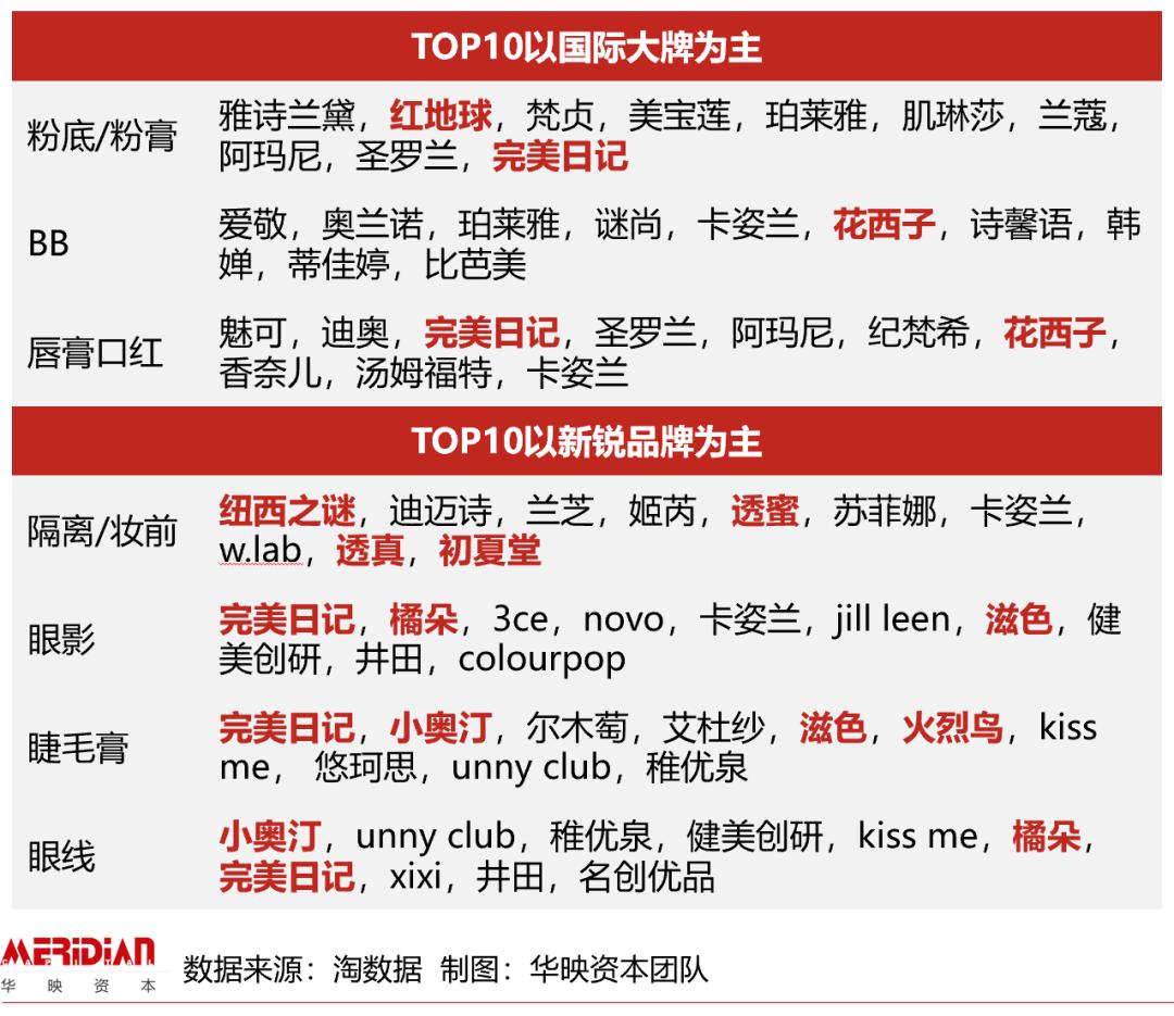 随着用户需求和使用场景的不断细分,美妆护肤的产品类目越来越精细,也给行业带来了新的机会。以彩妆为例,尽管国际大牌仍在大类目(底妆、口红等)里屹立不倒,但近年来崛起的新锐品牌也在一些细分类目中逐渐占据一席之地。