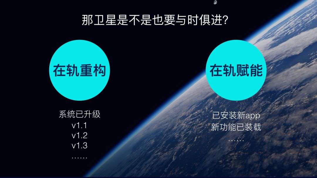 假如我们的用户提出了新的要求,也不用重新发射一颗卫星。可以在地面实现新功能,测试验证好了,再上注上去,相当于给我们的卫星也装载了个新的APP。