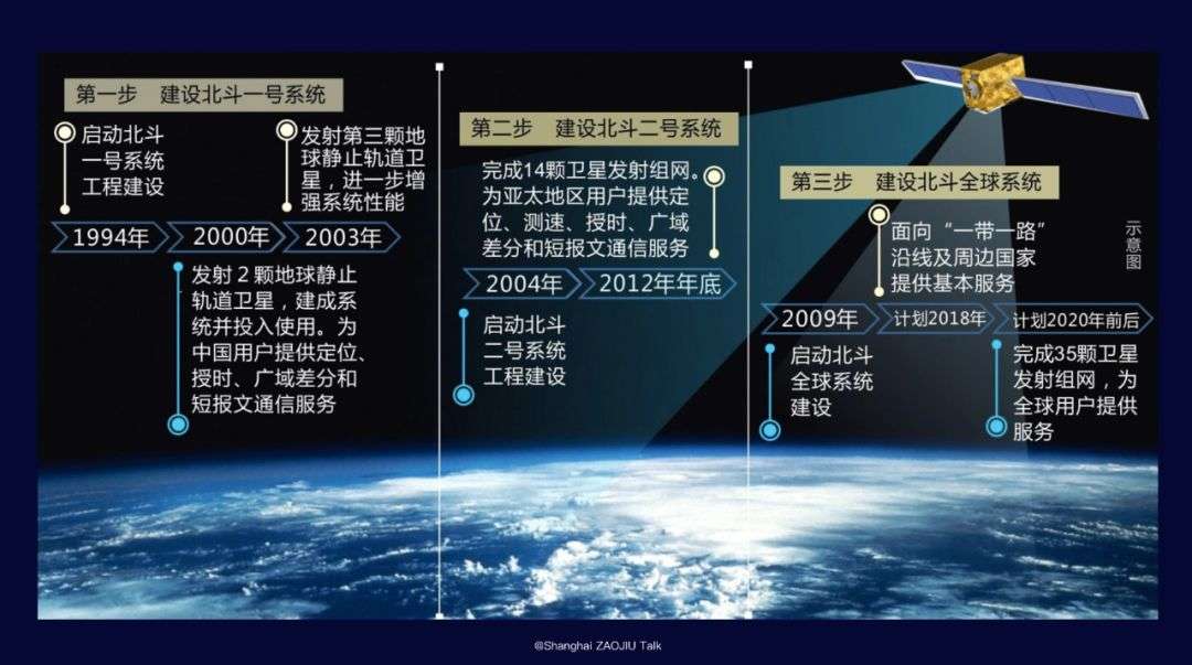 从1994年形成雏形,到2000年北斗一号建成使用,开启了我们俗称的北斗三步走的第一步。