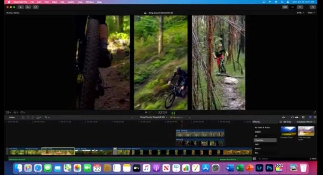 这是Final Cut pro第一次在apple芯片上运行,下面是一段4K视频,可见视频播放非常流畅,并且所有的fiter都可以实时应用在视频中。