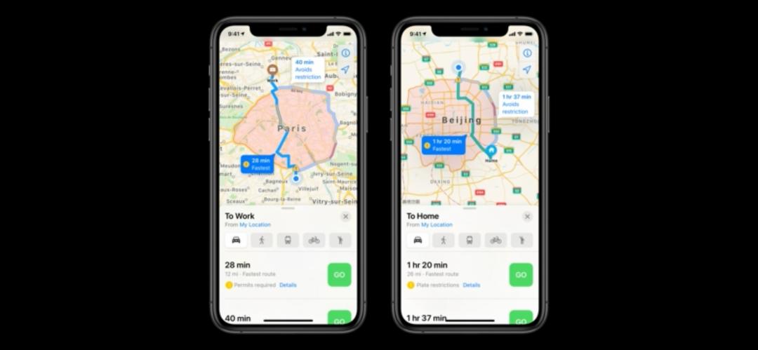 在新地图中还增加了拥堵功能,通过该功能可以查看其所在位置以及替代路线选项,此外,针对中国路况,新地图还增加了限号提醒功能。