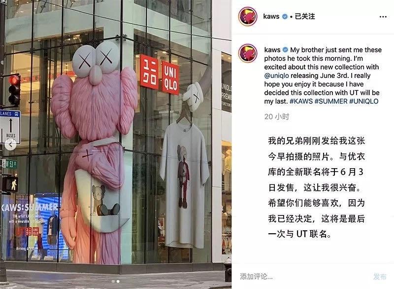 2019年6月3日,快消品牌优衣库&知名街头艺术家KAWS最后一次跨界联名的合作款在这一天正式发售。