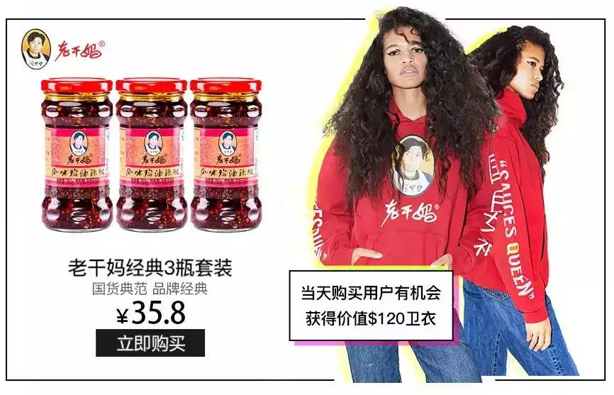 或者还可以选择下单价值35.8元的老干妈经典3瓶套装,碰运气看能否有机会成为得到这件卫衣的幸运儿。