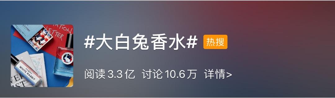 而#大白兔香水#这一话题,在微博阅读量高达3.3亿,话题讨论量超10万。