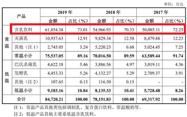 首先还是公司目前的产品结构存在问题。菊乐食品在招股书中曾提及,公司凭借“酸乐奶”构筑的品牌影响力以及多元化的渠道建设,陆续推出“烧酸奶”、“蜜咔滋”等具有年轻、时尚、休闲等特点的低温发酵乳和“法式酸奶”、“有机纯牛奶”等常温新品。