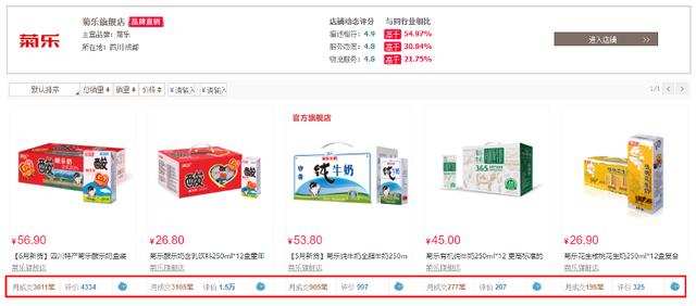 从菊乐食品天猫旗舰店来看,公司目前仅上架五款产品,其中两款为酸乐奶产品的不同规格包装,另外三款则分别是纯牛奶、有机牛奶及花核桃生牛奶三款产品,相比前者月销量超过3000笔而言,后三块产品销量明显偏低,均不足1000笔。