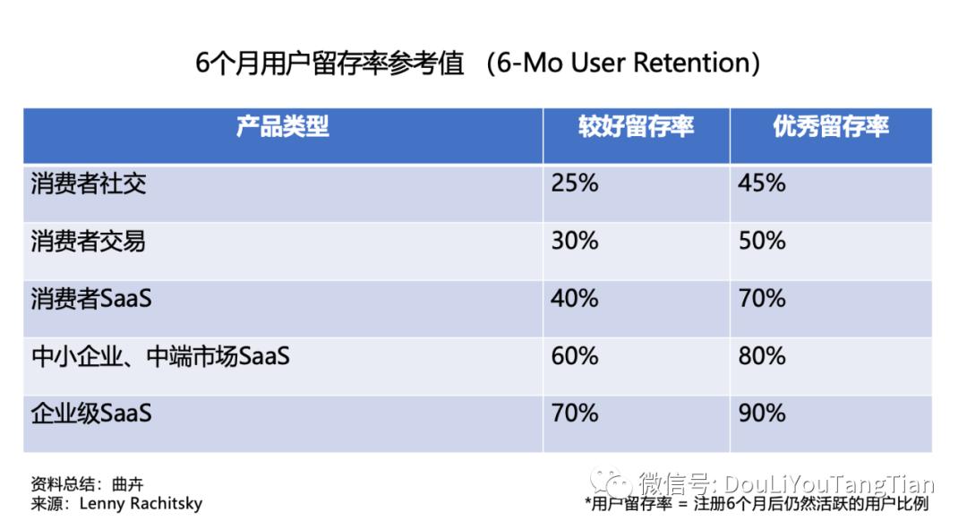 前面提到,对于C端产品,针对6个月用户留存率