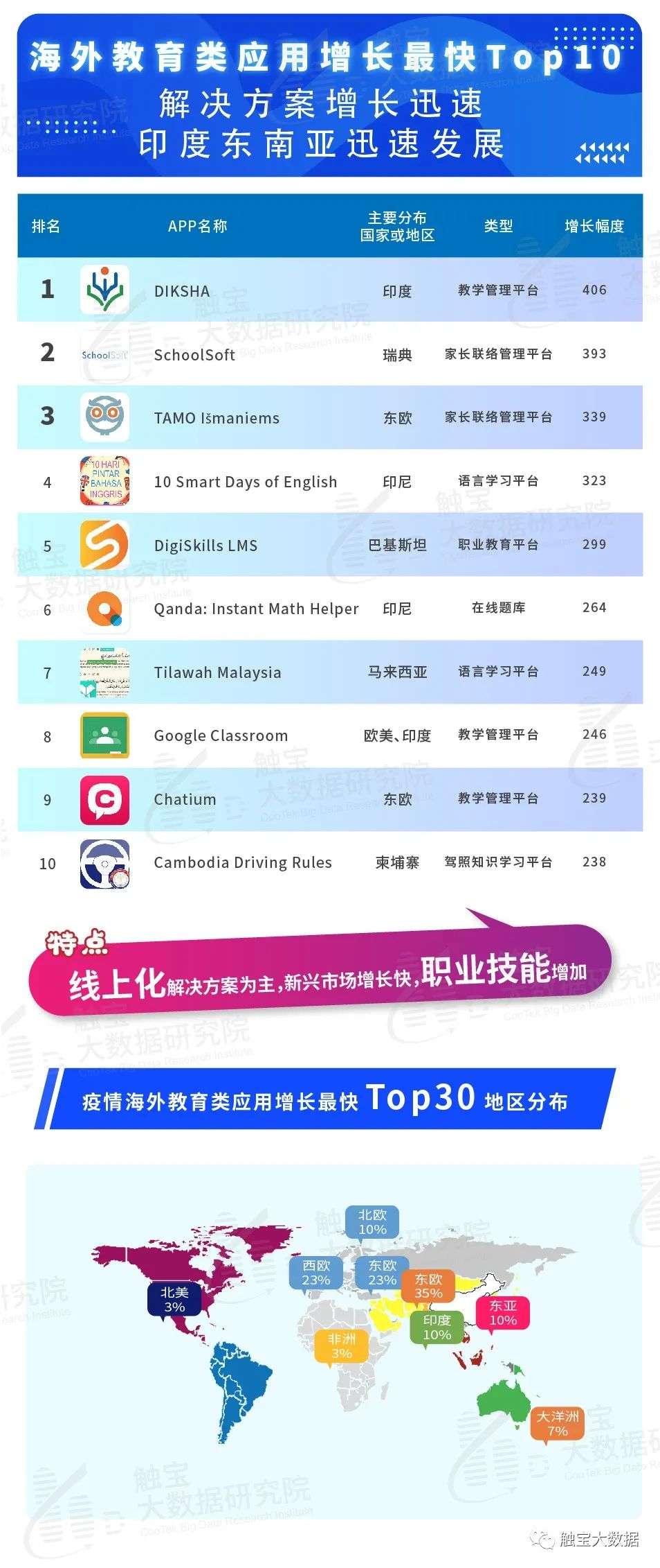 疫情使诸多行业的互联网化加速,而教育作为刚需行业脱离了以往的线下场景,对线上的需求被急剧拉升,在众多在线行业中增长突出。尤其是在需求较强的 K12 阶段,在线教育应用在内容分发,线上学堂管理,直播数据支持方面都有较强的增长,其中不同国家在线上化上也有不同的特征,与当地的用户及教育制度安排有关。本次报告中触宝大数据研究院将展示在线教育报告在疫情期间各行业的增速及其他热门市场在线教育的行业趋势。